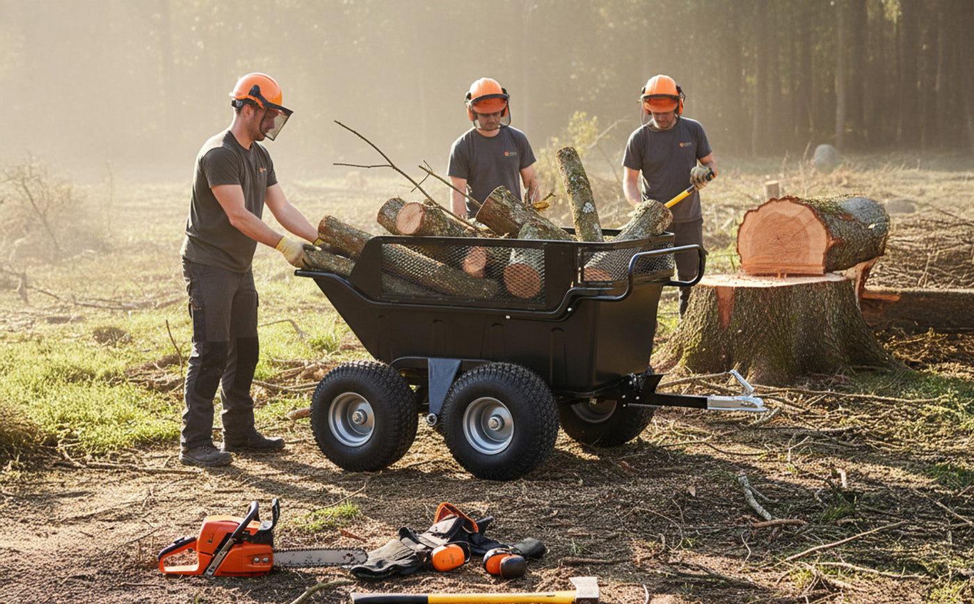 Voorzien van 4 grote 18-inch rubberen banden biedt de aanhanger uitstekende grip en stabiliteit op ongelijke of zachte ondergrond. Zo kun je altijd rekenen op betrouwbare prestaties – op de boerderij, in de tuin of op de bouwplaats.