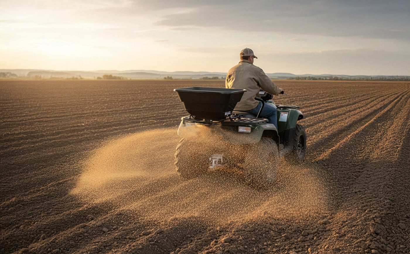 Neem de moeite uit grootschalig strooien met deze krachtige en veelzijdige ATV-gemonteerde strooier.