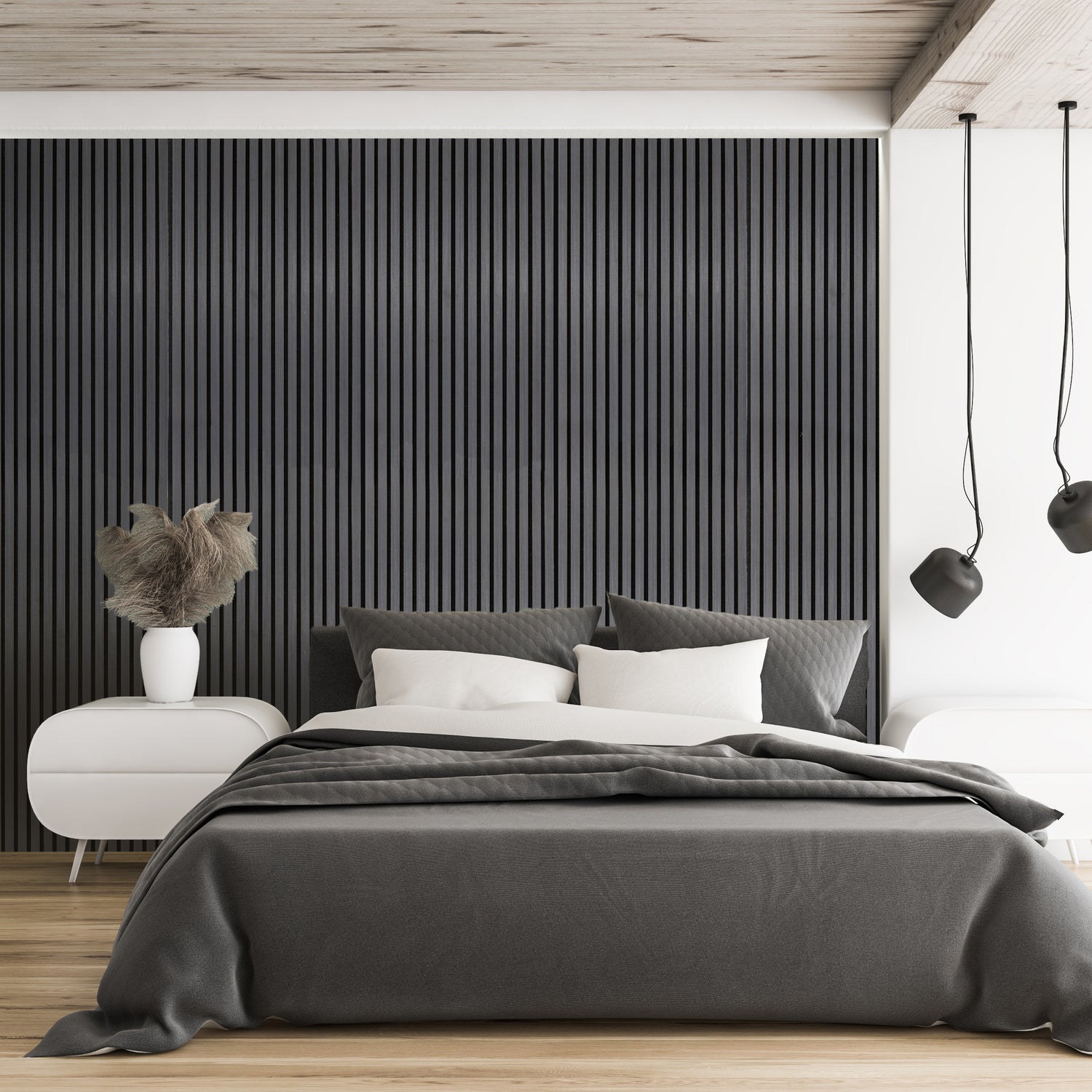 Verfraai uw interieur met deze akoestische lamellenpanelen met donker Antraciet Grijs houteffect, ideaal voor iedereen die op zoek is naar een verfijnde designoplossing met het extra voordeel van geluidsreductie. Deze panelen zijn ideaal voor iedereen die op zoek is naar een geraffineerde ontwerpoplossing met extra geluidsreductie. Of ze nu voor een professionele werkruimte of een gezellig huis worden gebruikt, ze bieden topkwaliteit, uitzonderlijke functionaliteit en een tijdloze stijl.