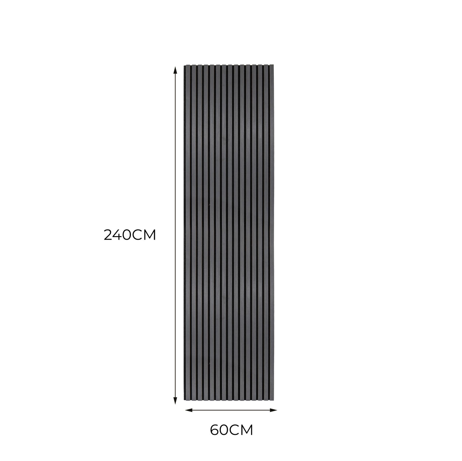 Het installeren van deze panelen is eenvoudig dankzij de meegeleverde bevestigingskit. Ze zijn ontworpen om rechtstreeks op muren of plafonds te worden gemonteerd en bieden veelzijdigheid voor een breed scala aan toepassingen. Met een hoogte van 240 cm en een breedte van 60 cm per paneel beslaan deze akoestische lamellenpanelen een groot oppervlak, waardoor ze ideaal zijn voor grotere ruimtes of installaties op maat.