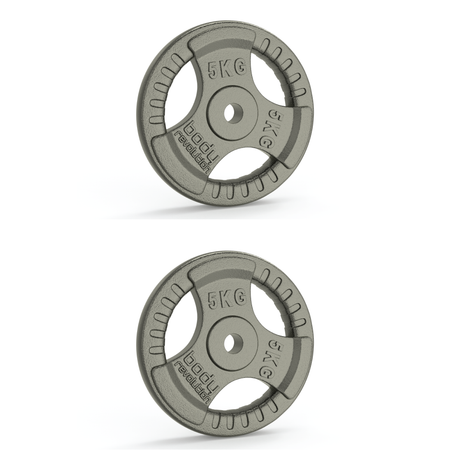 € 189,99Eenheid prijs /Niet beschikbaar2x 5kg Gietijzeren Gewichtsschijven – 1” Standaard Tri-Grip