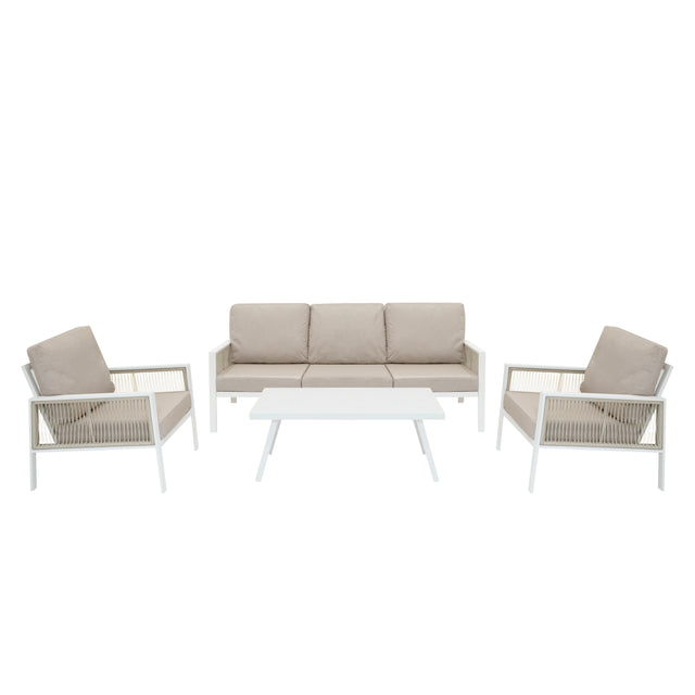 Transformeer jouw buitenruimte met deze aluminium 4-delige loungeset, een stijlvolle en moderne toevoeging aan elk terras of elke tuin.