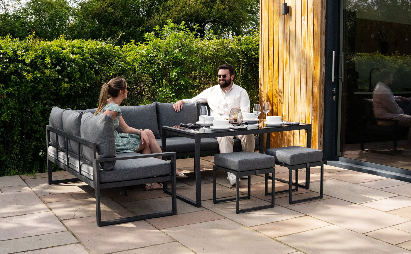 Deze stijlvolle loungeset combineert een stevig, lichtgewicht aluminium frame met een duurzame poedercoating voor langdurige kwaliteit. De extra dikke, weerbestendige kussens met afneembare en wasbare hoezen zorgen voor een luxe zitervaring én moeiteloos onderhoud – perfect voor elke buitenruimte.