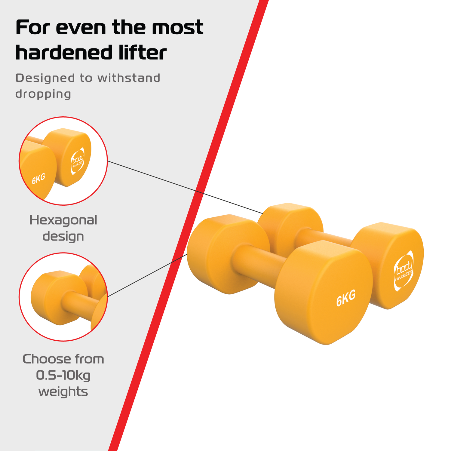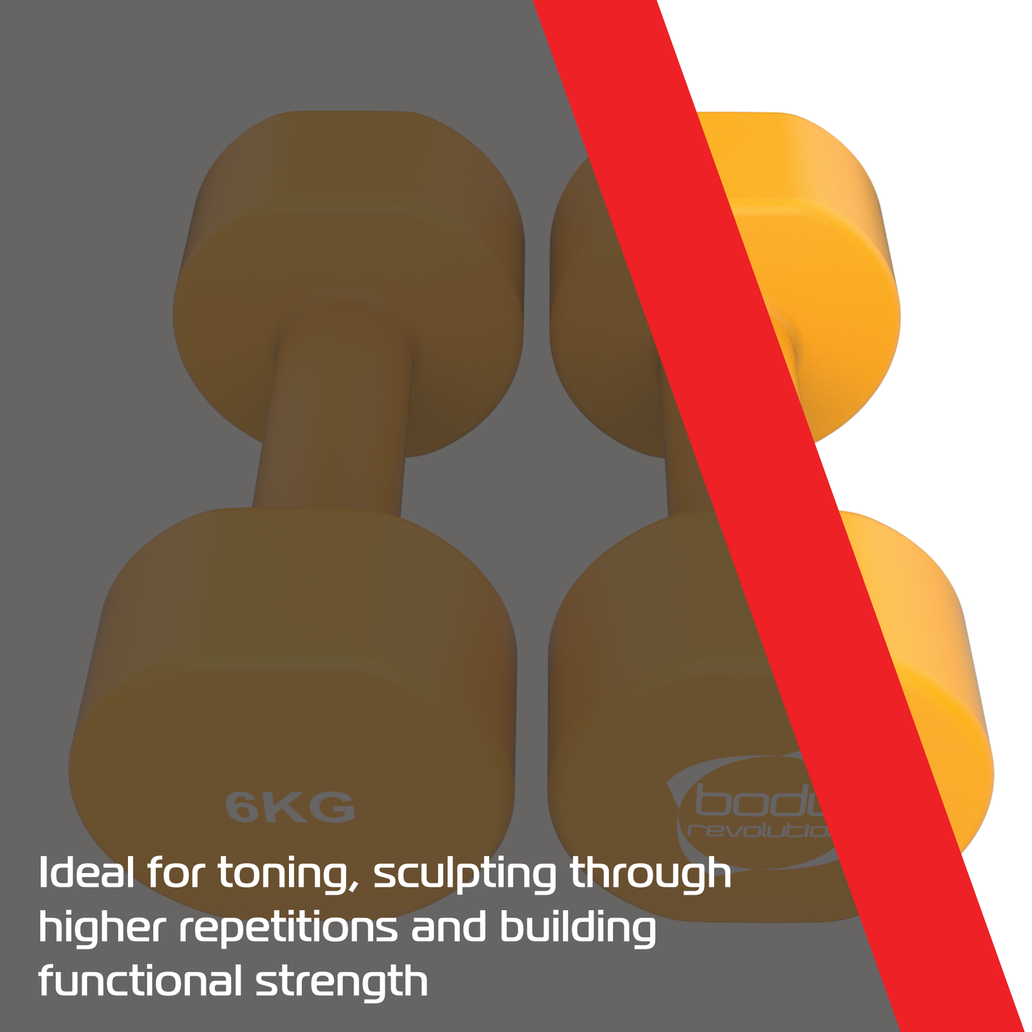 Geschikt voor binnen, buiten of in een professionele gym, combineren deze dumbbells gebruiksgemak, duurzaamheid en prestaties. Ze weerspiegelen de missie van Body Revolution: kwaliteitsuitrusting voor iedereen toegankelijk maken. Compact, betrouwbaar en eenvoudig in gebruik – een must voor lichte weerstandstraining.