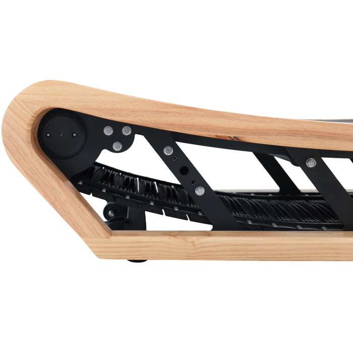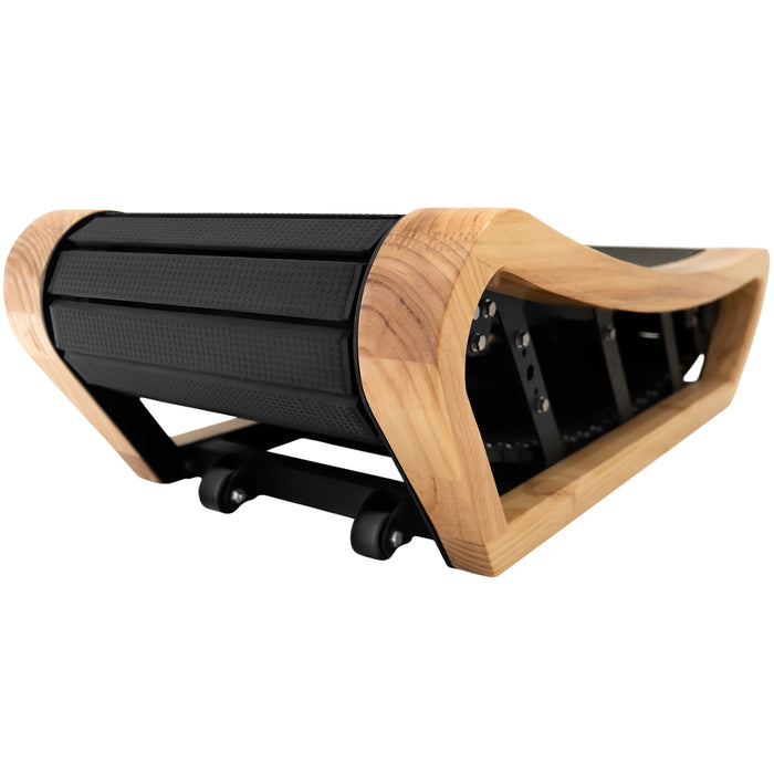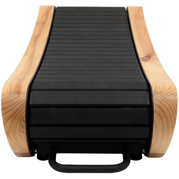 Deze loopband heeft een gladde houten afwerking en een handvatloos, minimalistisch silhouet dat natuurlijke warmte combineert met een moderne uitstraling. Dankzij het open ontwerp past hij moeiteloos onder de meeste sta-bureaus en biedt hij volledige bewegingsvrijheid tijdens het werken en wandelen.