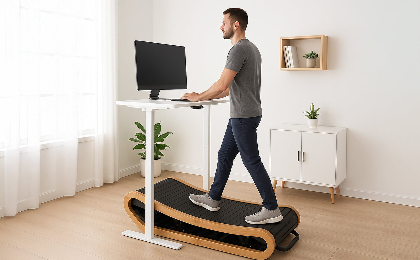 Het gebogen, handmatige loopvlak stimuleert een natuurlijke en ergonomische stapbeweging, waardoor je lichaam op een comfortabele manier de hele dag actief blijft. Doordat de loopband volledig zonder motor werkt, is hij uiterst stil en energiezuinig — ideaal voor focusrijke werkomgevingen en thuiskantoren.
