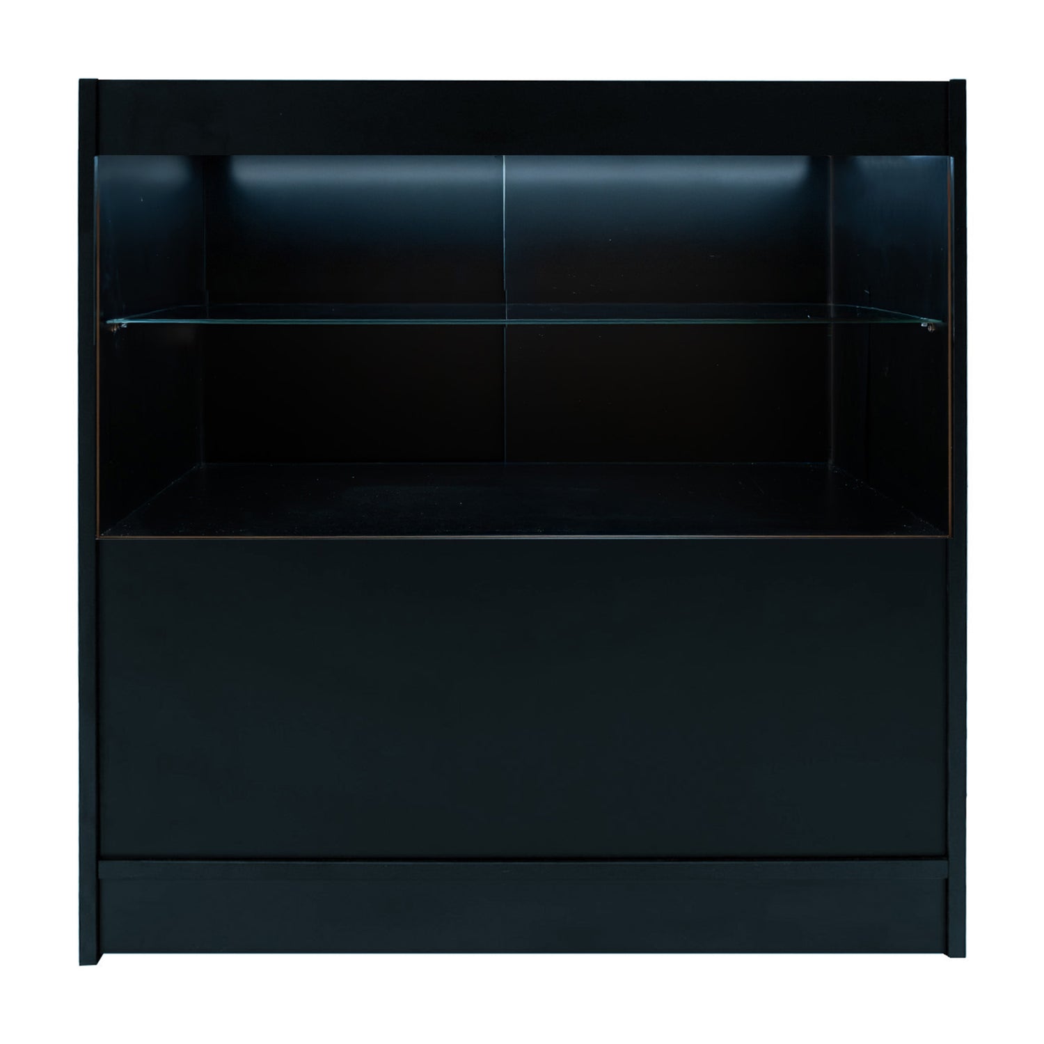 Alle toonbanken zijn vervaardigd uit hoogwaardig MDF met een duurzame zwarte melamine afwerking, wat zorgt voor langdurige prestaties en een eigentijdse, uniforme uitstraling. Dit gedeelde materiaal en afwerking creëren een consistente esthetiek in je toonbankopstelling, terwijl gehard glas in de C900 een verfijnd accent toevoegt aan de belangrijkste presentatiegebieden.