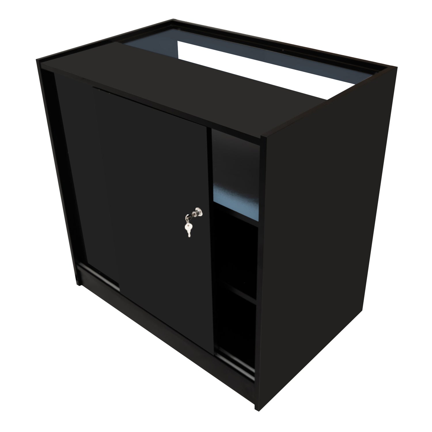 Alle balies zijn vervaardigd uit hoogwaardig MDF met een duurzame zwarte melamine afwerking, wat zorgt voor langdurige prestaties en een eigentijdse, uniforme look. Het gedeelde materiaal en de afwerking creëren een samenhangend uiterlijk over je volledige balieopstelling, terwijl de gehard glazen elementen van de B900 een verfijnde touch geven aan de displayzones.
