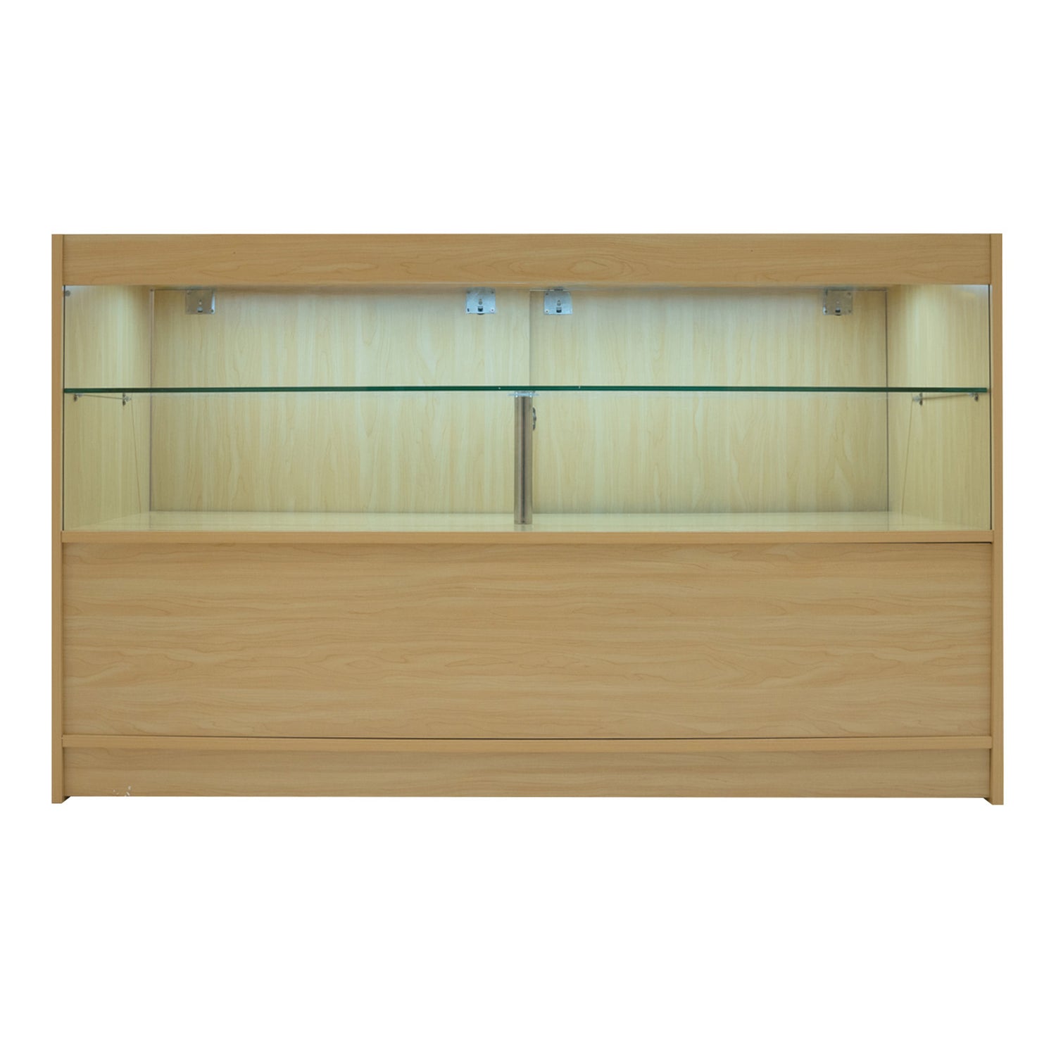 Alle toonbanken zijn vervaardigd uit hoogwaardig MDF met een duurzame melamine afwerking in esdoornkleur, wat zorgt voor langdurige prestaties en een moderne, uniforme uitstraling. Dankzij het gedeelde materiaal en de afwerking ontstaat er een consistent visueel geheel, terwijl de gehard glazen elementen in de C1500 een verfijnde touch geven aan de belangrijkste presentatiegebieden.