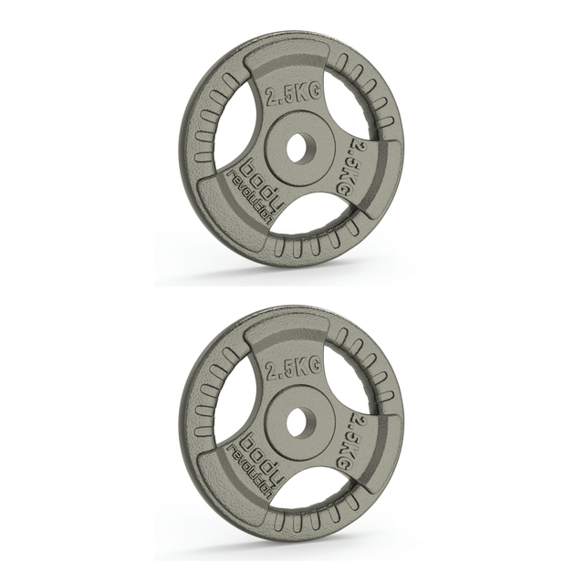 2 x 2,5 kg gietijzeren halterschijven – 1” standaard tri-grip