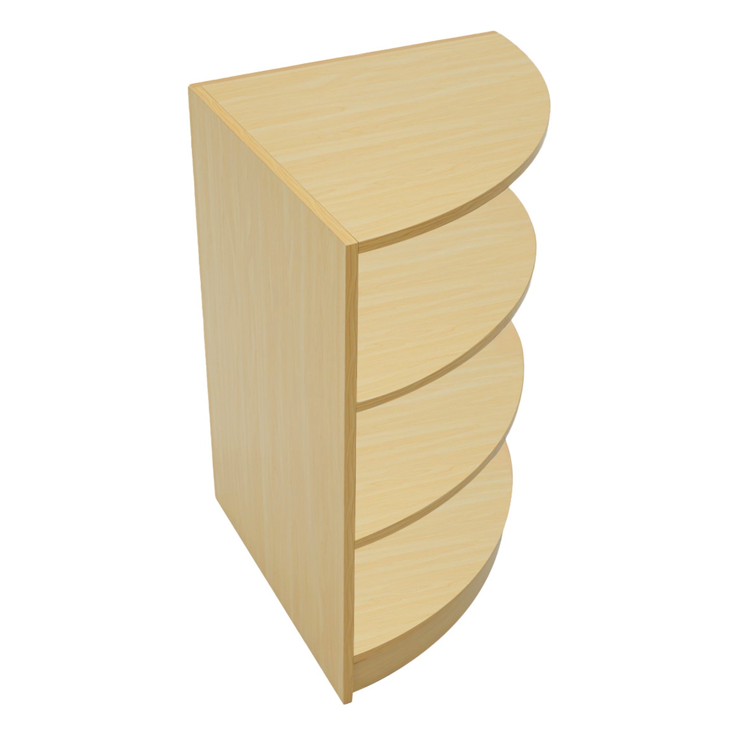 De LM60 gebogen hoektoonbank zorgt voor ruimtebesparende functionaliteit en een vloeiende winkelindeling. Dankzij het compacte, gebogen ontwerp past deze toonbank perfect in hoeken of sluit hij naadloos aan op rechte toonbanken, wat een samenhangend toonbanksysteem creëert. De LM60 beschikt over drie open planken aan de klantzijde die zorgen voor maximale zichtbaarheid en gemakkelijke toegang tot uw producten – een ideale oplossing om hoeken optimaal te benutten zonder uw lay-out te onderbreken.