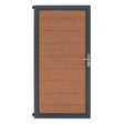 Vakkundig vervaardigd uit hoogwaardig WPC (wood-plastic composite) en verstevigd met een robuust aluminium frame, combineert deze poort esthetiek met structurele sterkte. Het paneel bestaat uit negen in elkaar grijpende planken die samen één solide geheel vormen, dat zijn vorm en uitstraling langdurig behoudt. Het aluminium frame zorgt niet alleen voor extra stevigheid, maar is ook voorzien van veelzijdige bevestigingspunten, zodat de poort eenvoudig te monteren is op diverse palen of bestaande constructies via de voorgeboorde gaten.