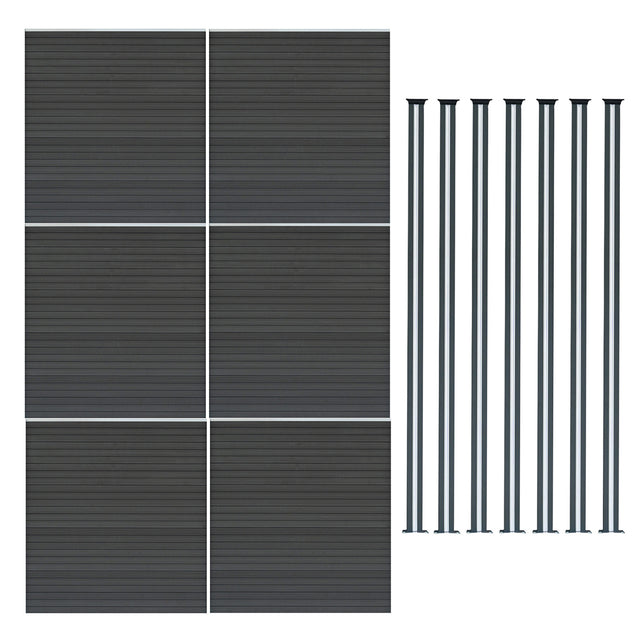Composiet Schutting Paneel x 6 & LED Palen x 7 - Grijs