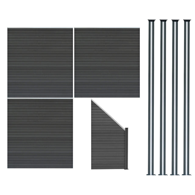Composiet Schutting Panelen x 3, Schuin Paneel & LED Palen x 4 - Grijs
