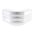 De LM60 gebogen hoekbalie voegt ruimtebesparende functionaliteit en een vloeiende lay-out toe aan je winkelruimte. Het compacte, gebogen ontwerp maakt het mogelijk om deze netjes in hoeken te plaatsen of naadloos aan te sluiten op rechte balies om zo een samenhangend baliesysteem te creëren. De LM60 beschikt over drie open, klantgerichte presenteerplanken die maximale zichtbaarheid en toegankelijkheid van producten bieden – een ideale oplossing om hoeken effectief te benutten zonder je indeling te verstoren.