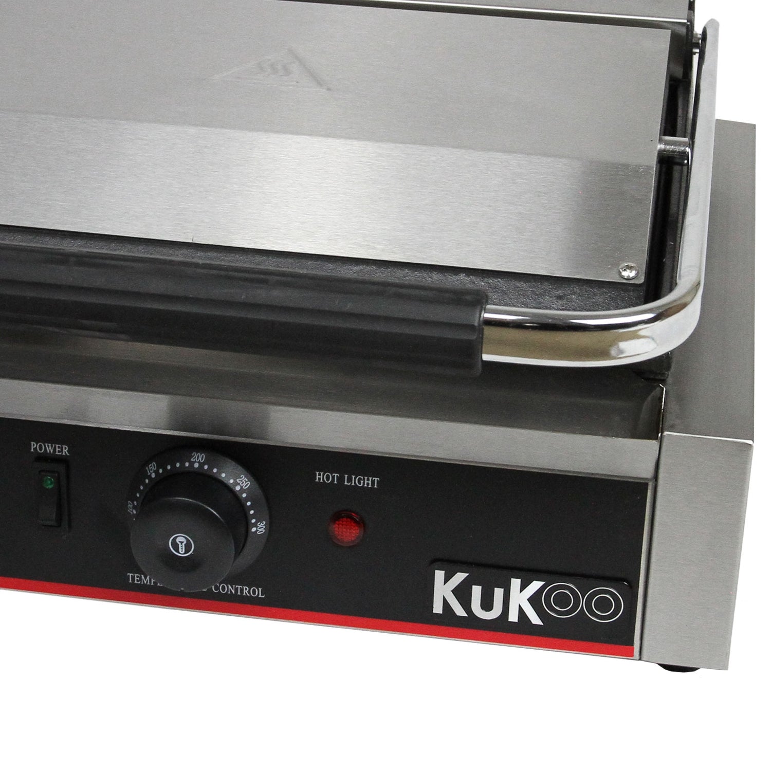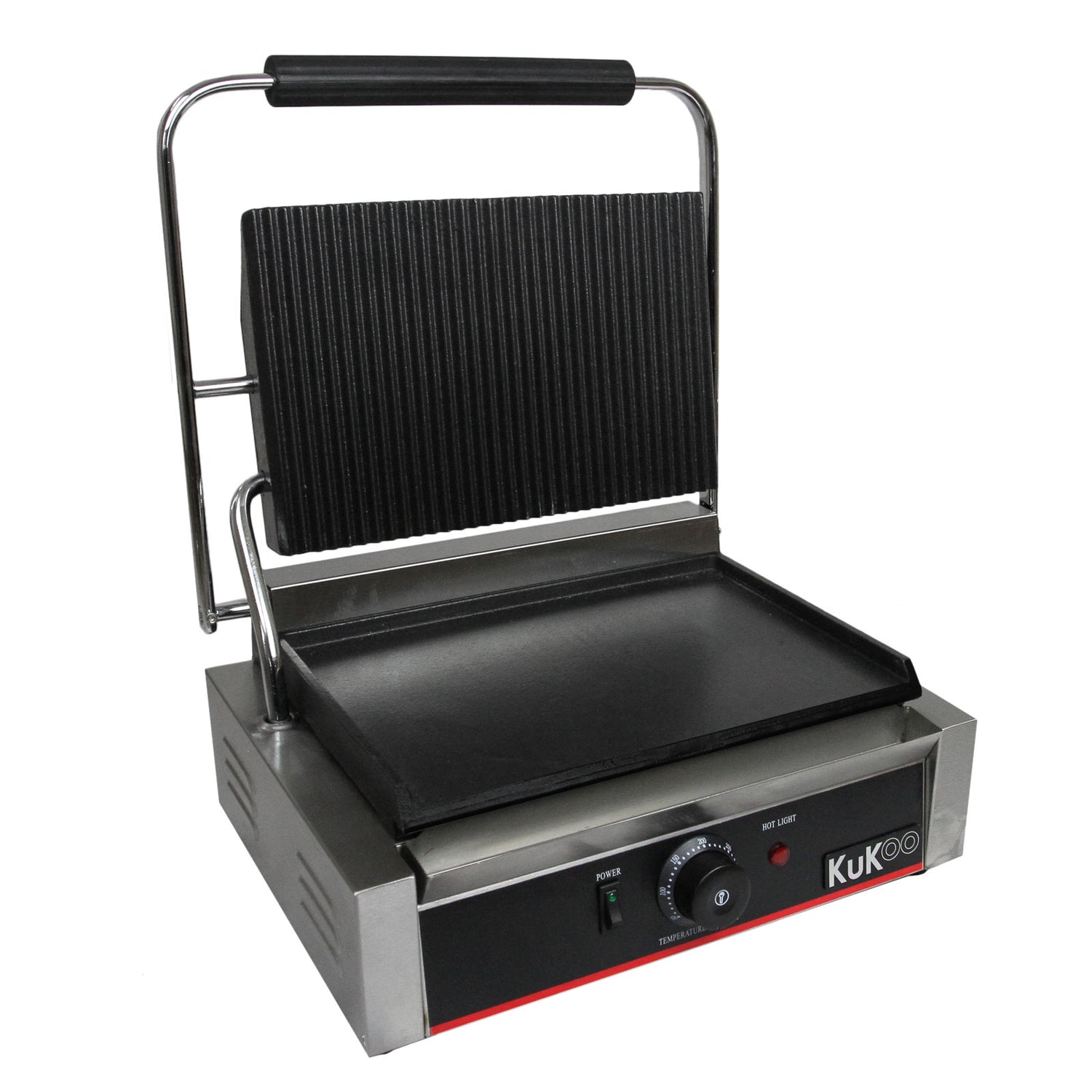 De KuKoo Panini-grill is een essentieel apparaat voor alle sandwichartiesten. De enkel geribbelde, krasbestendige grill biedt broodjes van professionele kwaliteit en zorgt ervoor dat uw eten aantrekkelijker is dan ooit.