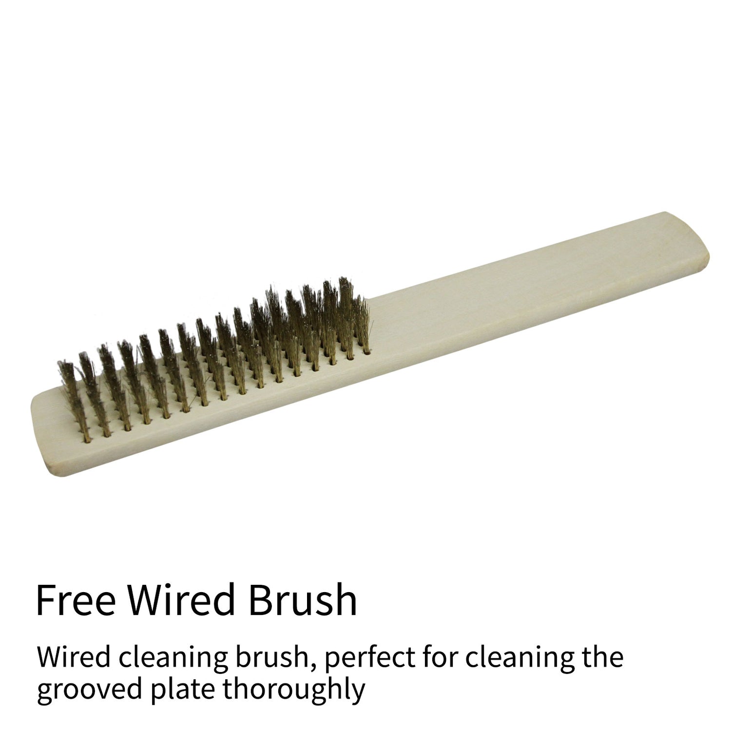 - GRATIS staalborstel, perfect om de geribbelde plaat mee schoon te maken.