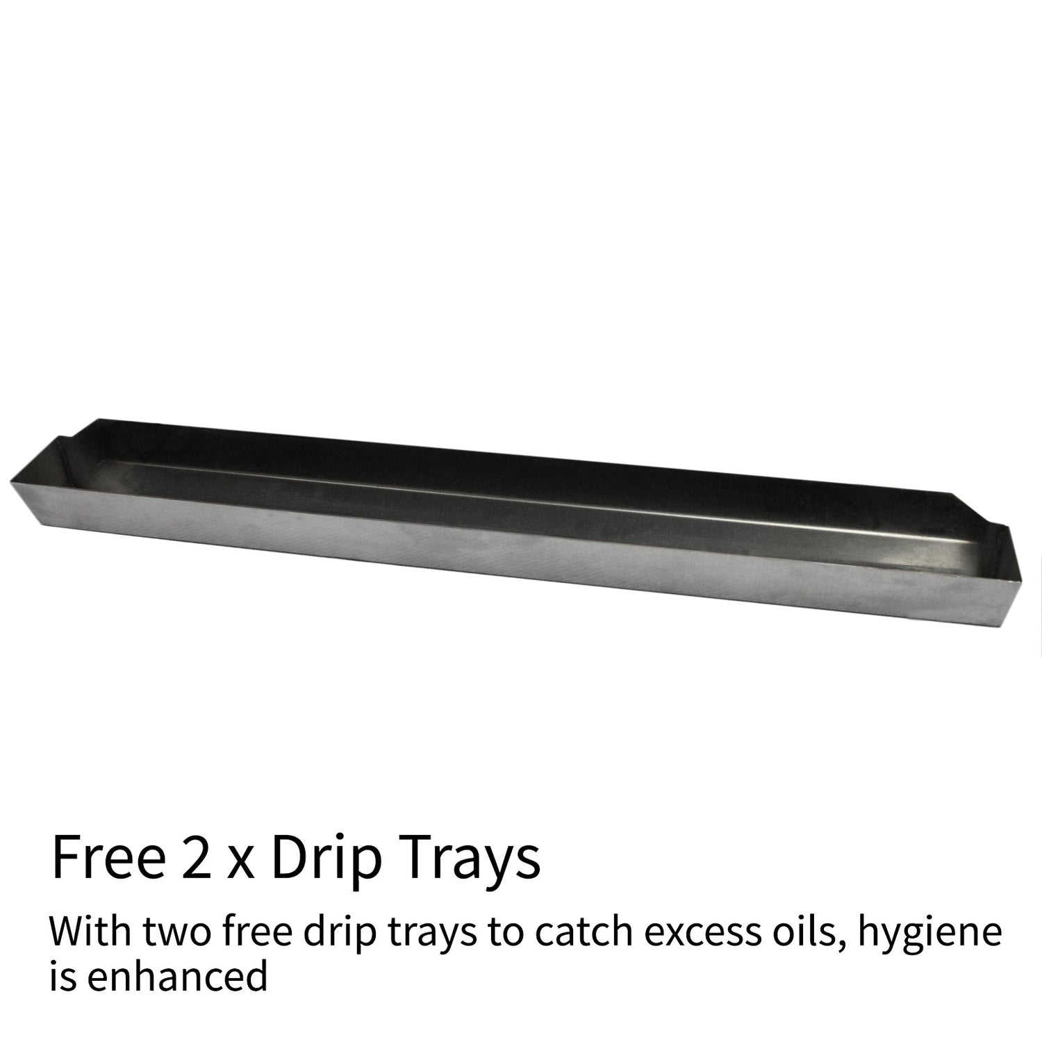 - Twee GRATIS afdruipbakjes om overtollige olie en vet mee op te vangen.