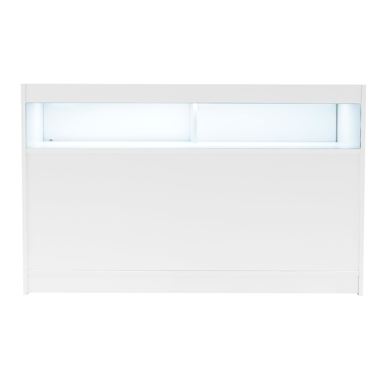 Alle toonbanken zijn gemaakt van hoogwaardig MDF met een duurzame witte melamine-afwerking, wat zorgt voor langdurige prestaties en een consistente, eigentijdse uitstraling. Het gebruik van hetzelfde materiaal en afwerking zorgt voor een uniforme look in je toonbankopstelling, terwijl gehard glas in de B1500 een verfijnde uitstraling geeft aan de belangrijkste presentatiegedeeltes.