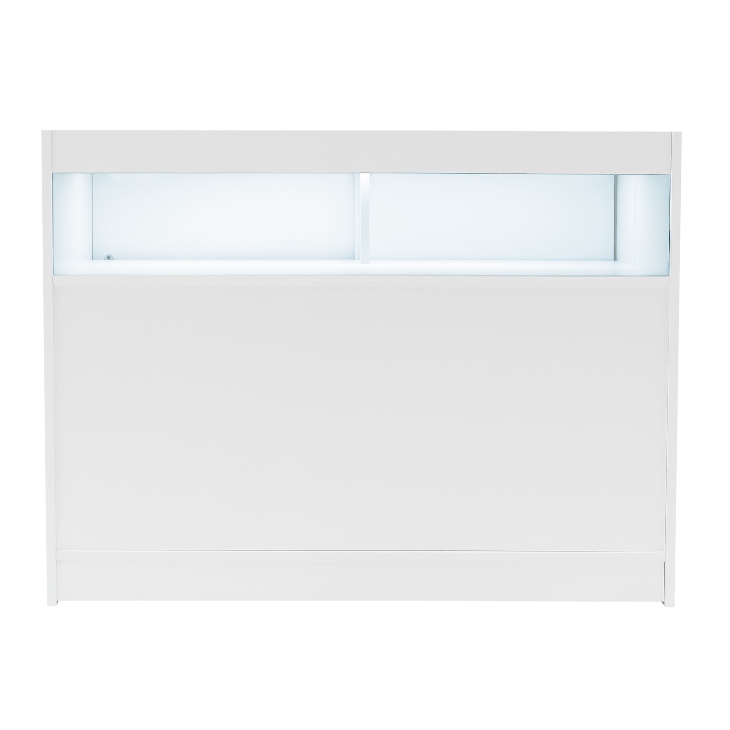 De B1200 LED-winkelbalie biedt een strak, modern presentatiemeubel dat visuele impact combineert met dagelijks gebruiksgemak. Elke unit is voorzien van heldere witte LED-verlichting die de zichtbaarheid van producten versterkt, zodat jouw assortiment ook in minder goed verlichte omgevingen onmiddellijk de aandacht trekt. Met één displayplank en twee afgesloten planken biedt de B1200 de perfecte balans tussen veilige opslag en een aantrekkelijke presentatie. De afsluitbare schuifdeuren aan de achterzijde houden je voorraad veilig opgeborgen, terwijl de klantzijde een strak en professioneel uiterlijk behoudt. Of het nu gaat om sieraden, accessoires of hoogwaardige artikelen – de B1200 vormt een stijlvolle eyecatcher in elke winkel.