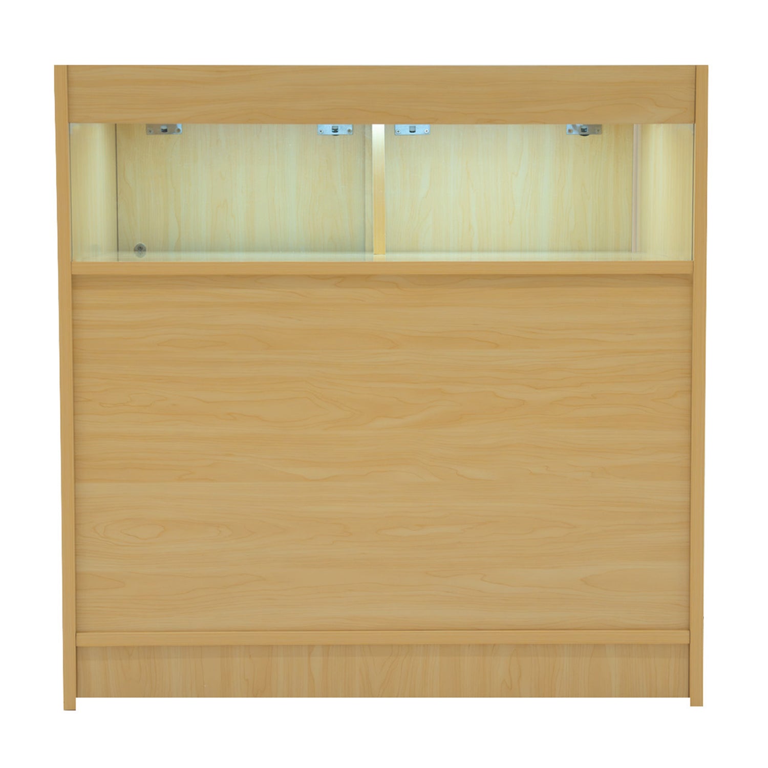 De B900 LED-winkelbalie biedt een strak, modern presentatiemeubel dat visuele impact combineert met dagelijks gebruiksgemak. Elke unit is uitgerust met heldere witte LED-verlichting die de productzichtbaarheid versterkt, zodat jouw assortiment zelfs in minder goed verlichte omgevingen de aandacht trekt. Met één displayplank en twee afgesloten planken biedt de B900 de ideale balans tussen veilige opslag en aantrekkelijke productpresentatie. De afsluitbare schuifdeuren aan de achterzijde houden de voorraad veilig opgeborgen, terwijl de klantzijde een strak en professioneel uiterlijk behoudt. Of het nu gaat om sieraden, accessoires of luxe artikelen – de B900 vormt een stijlvolle eyecatcher in jouw winkel.