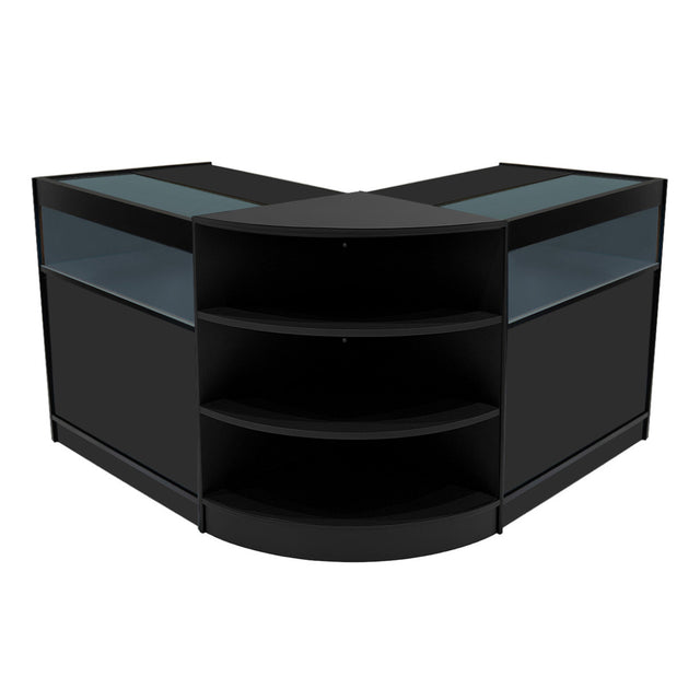 De LM60 gebogen hoekbalie voegt ruimtebesparende functionaliteit en een vloeiende indeling toe aan jouw winkelruimte. Het compacte, gebogen ontwerp zorgt ervoor dat deze balie netjes in hoeken past of naadloos aansluit op rechte balies om een samenhangend baliesysteem te creëren. De LM60 beschikt over drie open, klantgerichte presenteerplanken die de zichtbaarheid en toegankelijkheid van producten maximaliseren – ideaal om hoekruimtes efficiënt te benutten zonder de winkelindeling te verstoren.