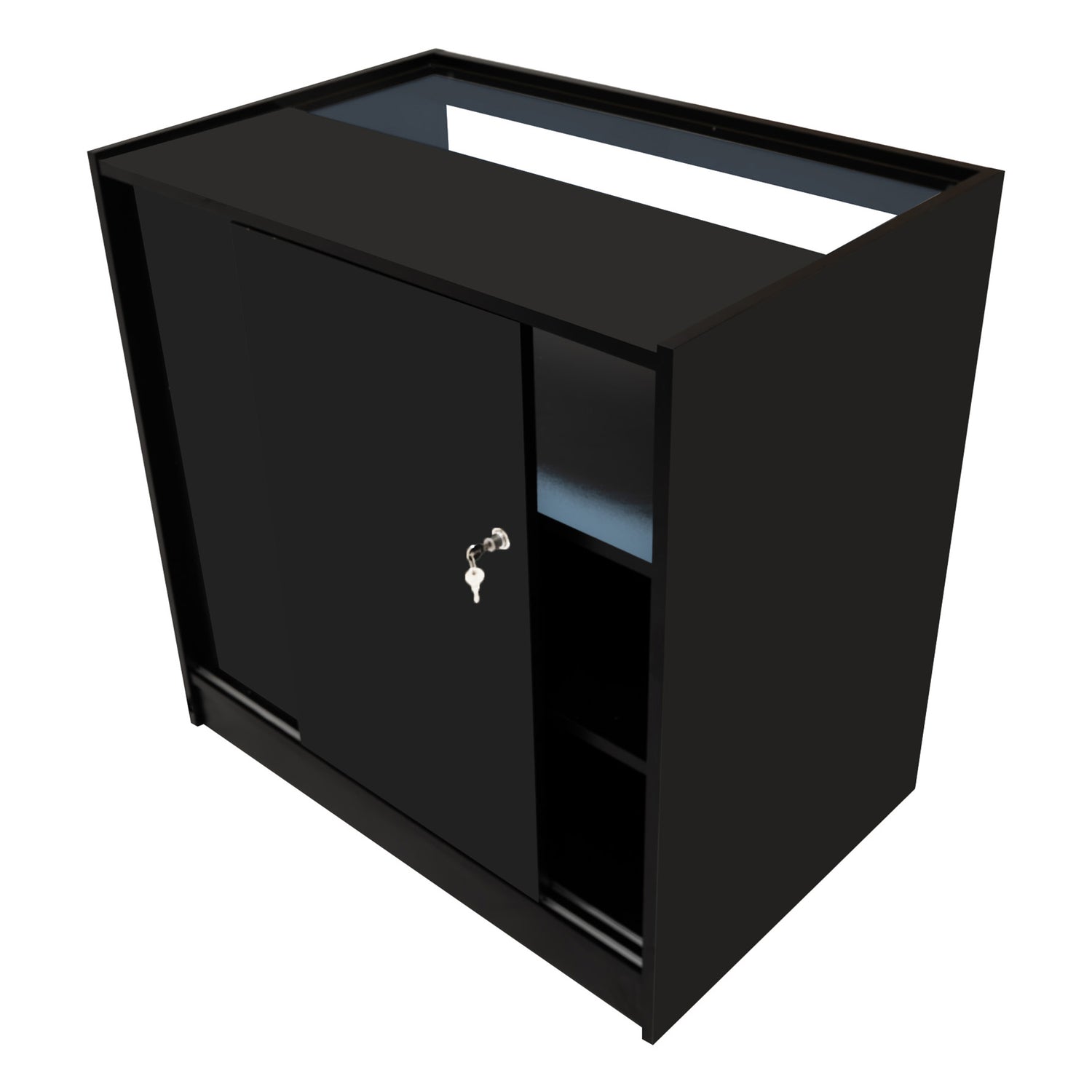De B900 LED-winkelbalie biedt een strakke, moderne presentatiestructuur die visuele impact combineert met praktische bruikbaarheid. Elke unit is uitgerust met heldere witte LED-verlichting die de productzichtbaarheid versterkt, zodat jouw assortiment direct in het oog springt, zelfs in minder goed verlichte ruimtes. Met één presenteerplank en twee afgesloten planken biedt de B900 de ideale balans tussen veilige opslag en aantrekkelijke presentatie. Afsluitbare schuifdeuren aan de achterzijde houden de voorraad veilig, terwijl de klantzijde een strak en overzichtelijk uiterlijk behoudt. Of het nu gaat om sieraden, accessoires of hoogwaardige artikelen – de B900 vormt een elegante en professionele eyecatcher.